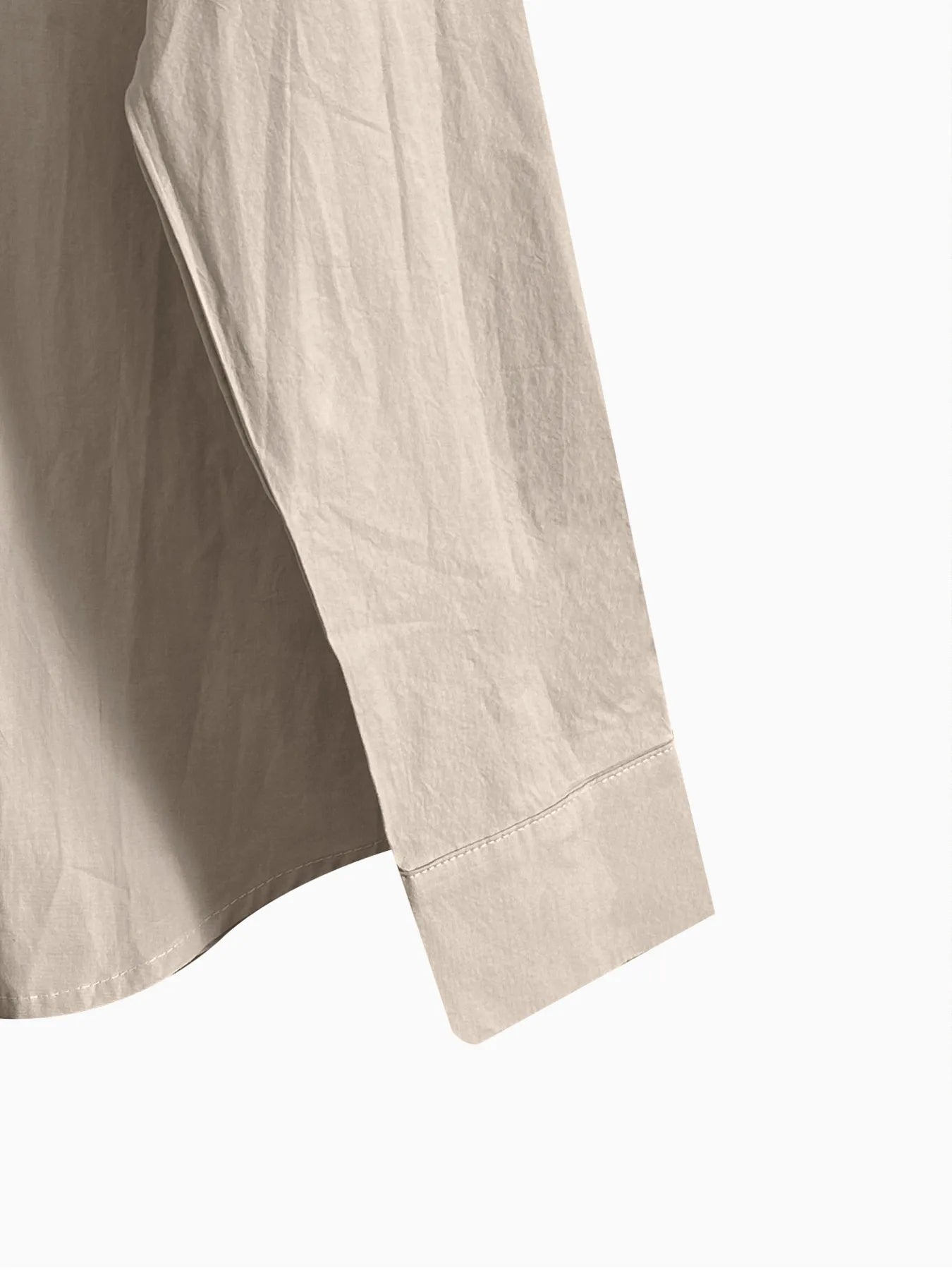 For women who lead with grace and dress with intention. This oversized button-up shirt is the definition of refined ease. With its soft beige tone, structured collar, and flowing silhouette, it brings quiet luxury to your everyday wardrobe. Whether you're heading to the office or strolling through the city, this shirt moves with you stylish, strong, and unapologetically feminine.