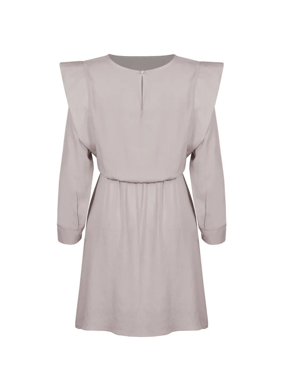 Step into serenity. Wear the feeling. This light-toned dress is a quiet showstopper soft, flowing, and effortlessly refined. With its cinched waist and asymmetrical hemline, it flatters your figure while allowing movement and grace. Whether you're walking into golden daylight or slipping into a slow Sunday, this dress wraps you in calm confidence.